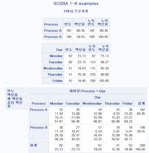 행합계, 열합계, 행 백분율, 열 백분율등을 쉽게 계산하고 확인할 수 있음