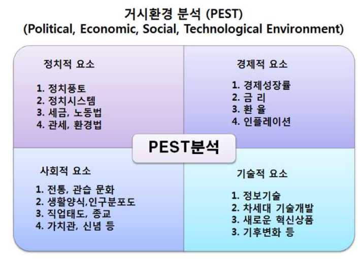 거시환경 : PEST 분석 - 정치, 경제, 사회, 기술