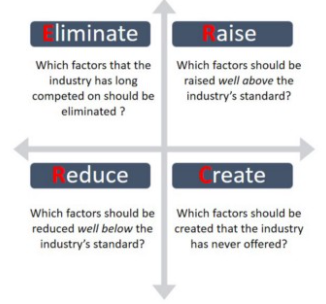 - ERRC : 비용을 절감하고 차별화 포이트를 향상