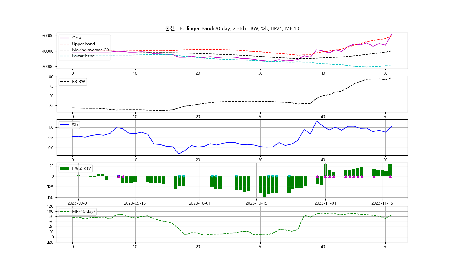| 케이티앤지 주가 전망, 종목 분석 (볼린저 밴드, 일중강도율(IIP), 현금 흐름지수(MFI) 기술 분석) (0) | 2023.11.19 |