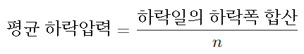 - 하락일의 하락폭 합산을 n으로 나눠 평균 하락압력을 계산합니다.
