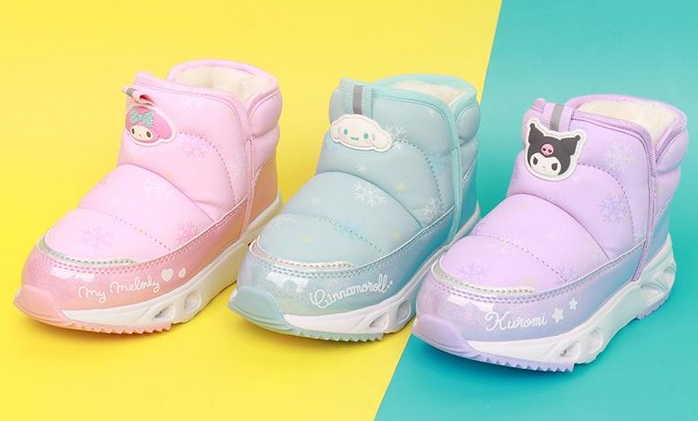 이 부츠는 산리오 정품으로, 아이들이 좋아하는 시나모롤, 헬로키티, 마이멜로디 등 인기 캐릭터가 디자인되어 있어요.