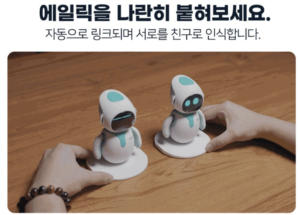 **에일릭 로봇 (Eilik)**은 AI 반려로봇으로, 스마트한 인공지능 기술을 활용해 다양한 감정을 표현하고, 사용자와 소통하는 기능을 가지고 있어요. 이 로봇은 단순히 움직이는 기계가 아니라, 사람처럼 감정표현을 할 수 있는 친구 같은 존재랍니다.