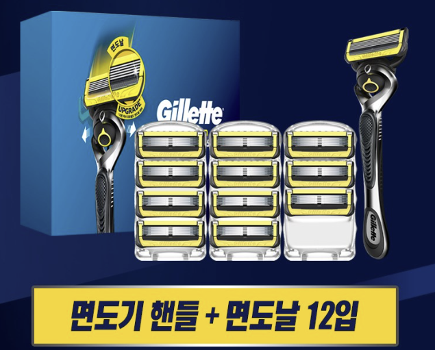 질레트 2024 프로쉴드 옐로우 면도기 핸들 + 면도날 12p 세트, 1세트 - 면도기날 | 쿠팡