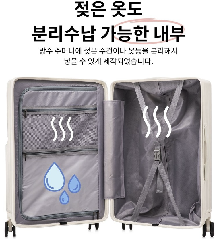 이 캐리어는 내부가 두 가지 공간으로 나뉘어 있어, 의류부터 신발, 액세서리까지 모두 깔끔하게 정리할 수 있습니다. 특히, 이중 지퍼 포켓은 작은 소지품을 분리해 넣을 수 있어 유용해요. 그래서 짐을 싸는 게 스트레스가 아니라, 오히려 재미있을 정도랍니다! 🧳