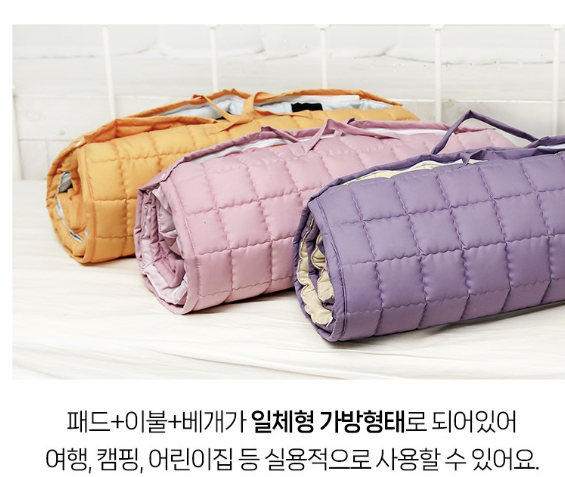 아이자리 키즈케어 어린이집 낮잠이불은 일체형 디자인으로 되어 있어요.