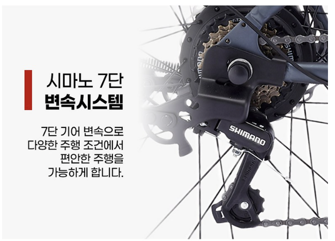 삼천리 팬텀TX는 시마노 변속 시스템을 탑재하고 있어요. 시마노는 자전거 변속기계의 명품으로 잘 알려져 있죠. 이 변속 시스템 덕분에 산악 라이딩뿐만 아니라 도심 주행에서도 아주 안정적인 변속과 주행이 가능합니다.