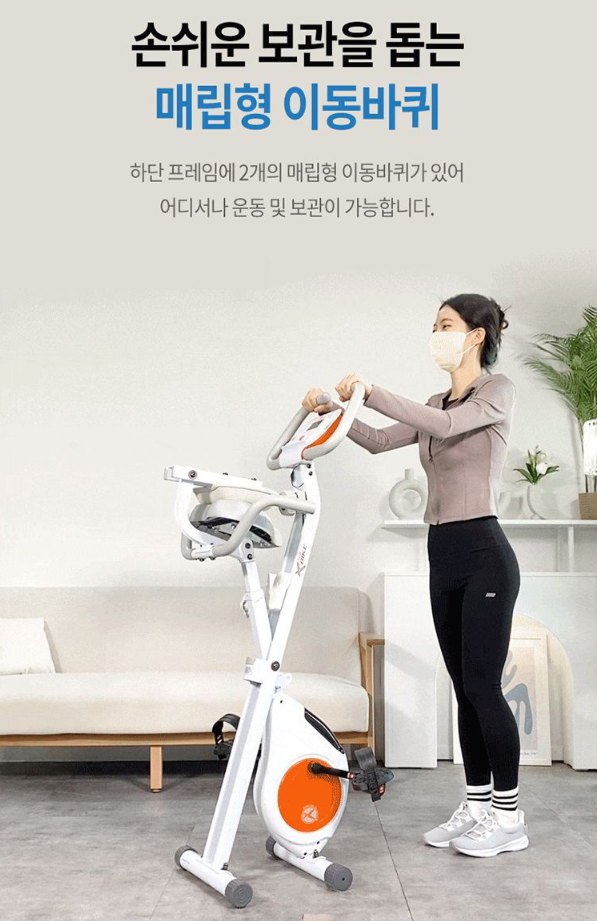 엑스바이크 숀리의 또 다른 큰 장점은 이동바퀴가 있다는 점이에요! 운동이 끝난 후에는 자리를 옮길 때도 간편하게 이동할 수 있습니다. 바퀴가 달려 있어서 집 안의 어느 곳이든 자유롭게 배치할 수 있어 공간 활용에 유리하죠. 작은 공간에도 쉽게 보관이 가능해서 공간 효율성을 중요하게 생각하는 분들에게 딱 맞는 제품입니다. 🚶♀️