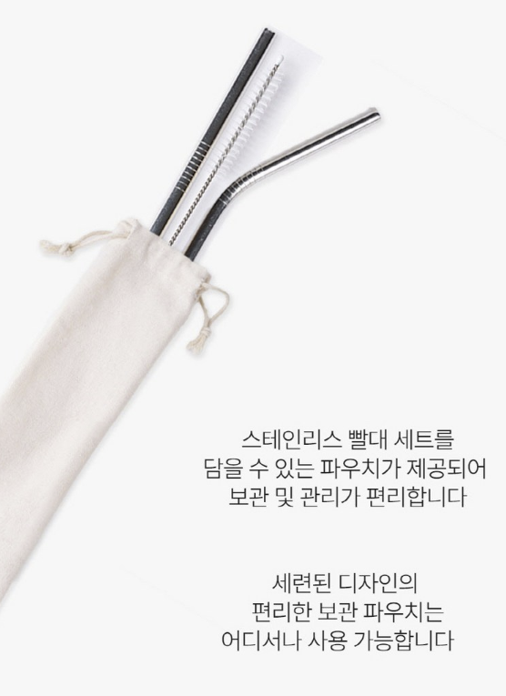 세척솔의 섬세한 브러시로 빨대 안쪽까지 깨끗하게 세척할 수 있고, 파우치 덕분에 언제 어디서나 깔끔하게 보관할 수 있답니다.