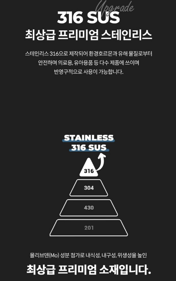 첫 번째로 눈에 띄는 건 바로 316 스테인레스!