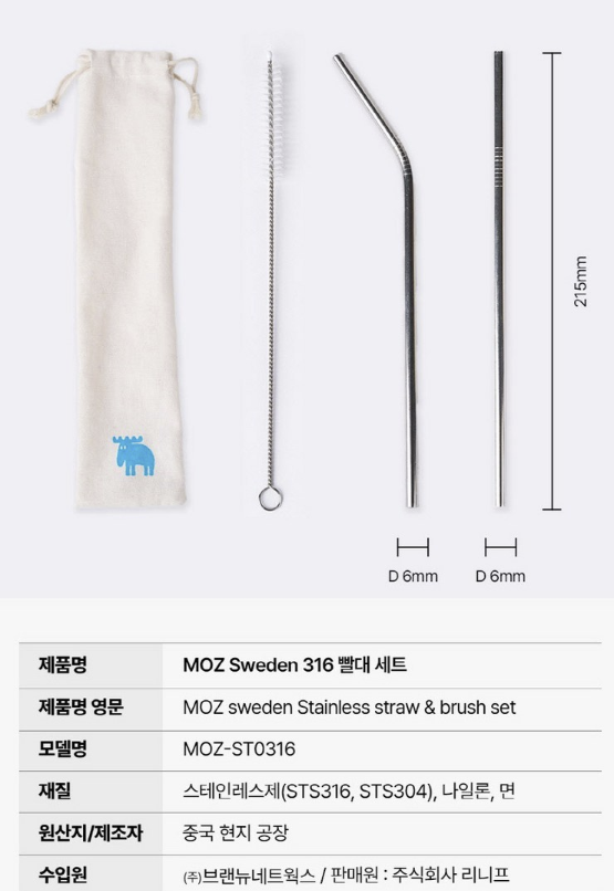 지금 바로 MOZ 스웨덴 316 스테인레스 빨대 세척솔 파우치 SET을 구매해 보세요!