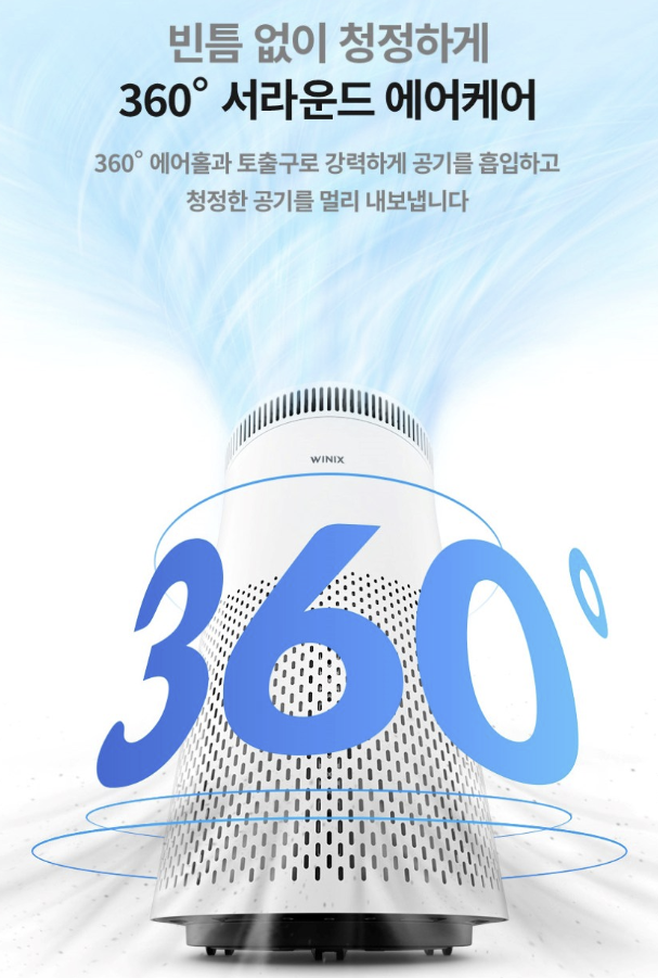 - 전방위적인 공기청정이 가능하므로, 어느 방향에 있어도 깨끗한 공기를 유지할 수 있어요.