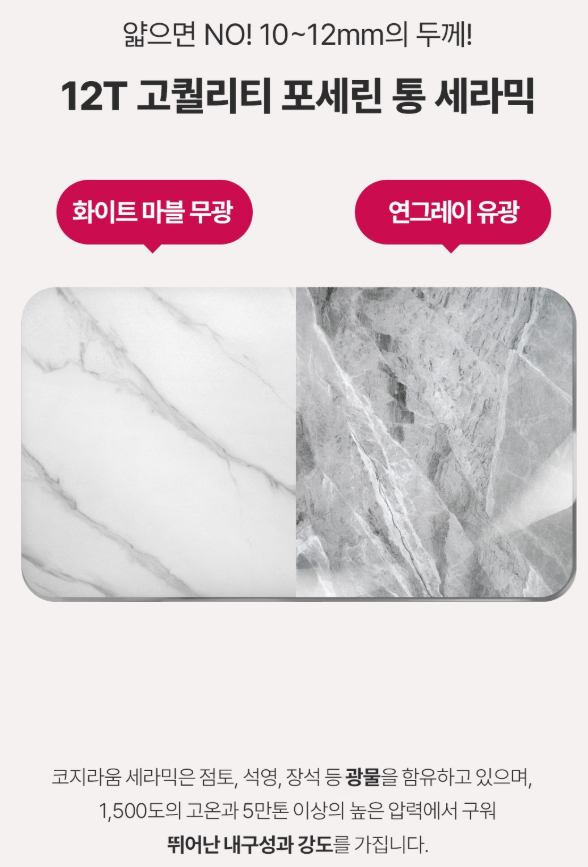 🔥 2. 소재 – 12T 통세라믹, 걱정 없는 상판
