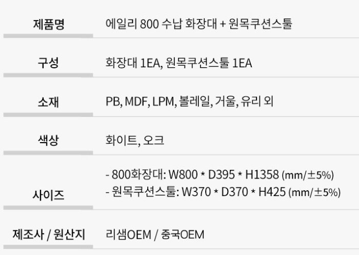 파로마 에일리 수납 화장대 800 + 원목쿠션스툴 - 일반화장대 | 쿠팡